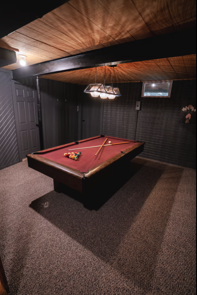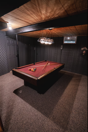 Walkout Basement with a pool table.