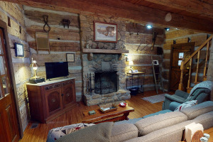 Both cabins have two bathrooms, charcoal grill, regulation size pool tables, dart boards, fire rings, hot tubs, wood-burning fireplaces, and a smart tv.