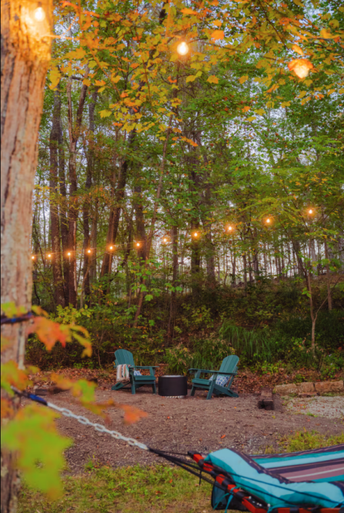 - Hammock & Fire pit with Adirondack chairs under string lights - perfect for evening hangouts. Please bring your own firewood, available at gas stations in Laurelville or Rockbridge.