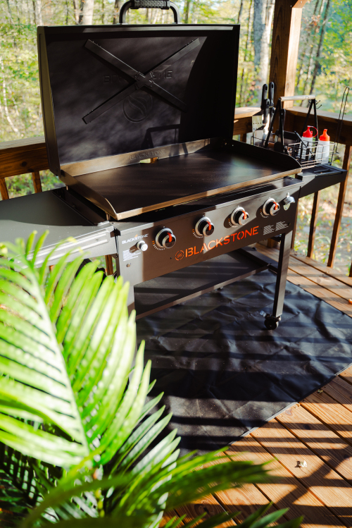 - Outdoor griddle with utensil caddy and dining setup, also overlooking the forest. Please bring your own propane tanks - available at gas stations in Laurelville or Rockbridge.